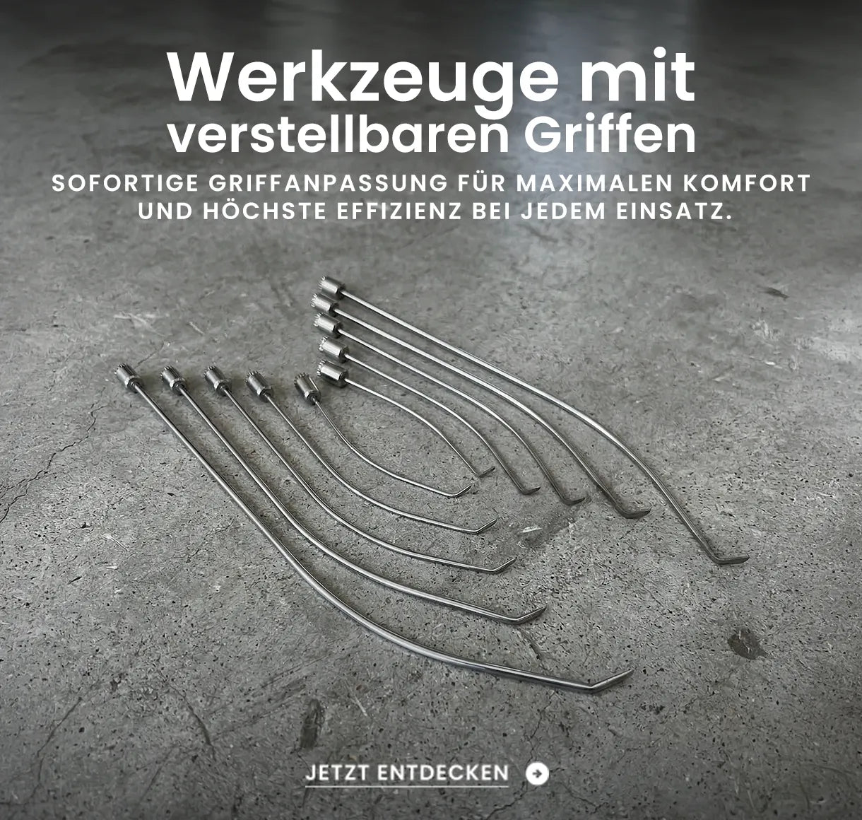 Rüsten Sie Ihre Werkstatt sofort mit unseren fachmännisch zusammengestellten PDR-Sets aus. Sie kombinieren hochkohlenstoffhaltige Stangen, hochwertiges Ziehwerkzeug und wichtige Zubehörteile für maximale tägliche Effizienz.